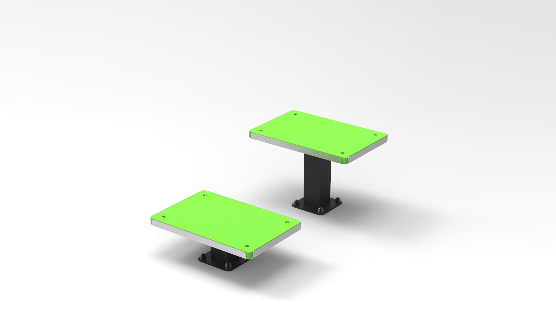 Coppia di Step EXER a due altezze (20 e 40cm) utili ad effettuare esercizi di tipo aerobico. L’esercizio base consiste nella salita e discesa dalla piattaforma ad un ritmo costante, ma sono molteplici le attività che si possono effettuare, spesso accompagnate a ritmo di musica.